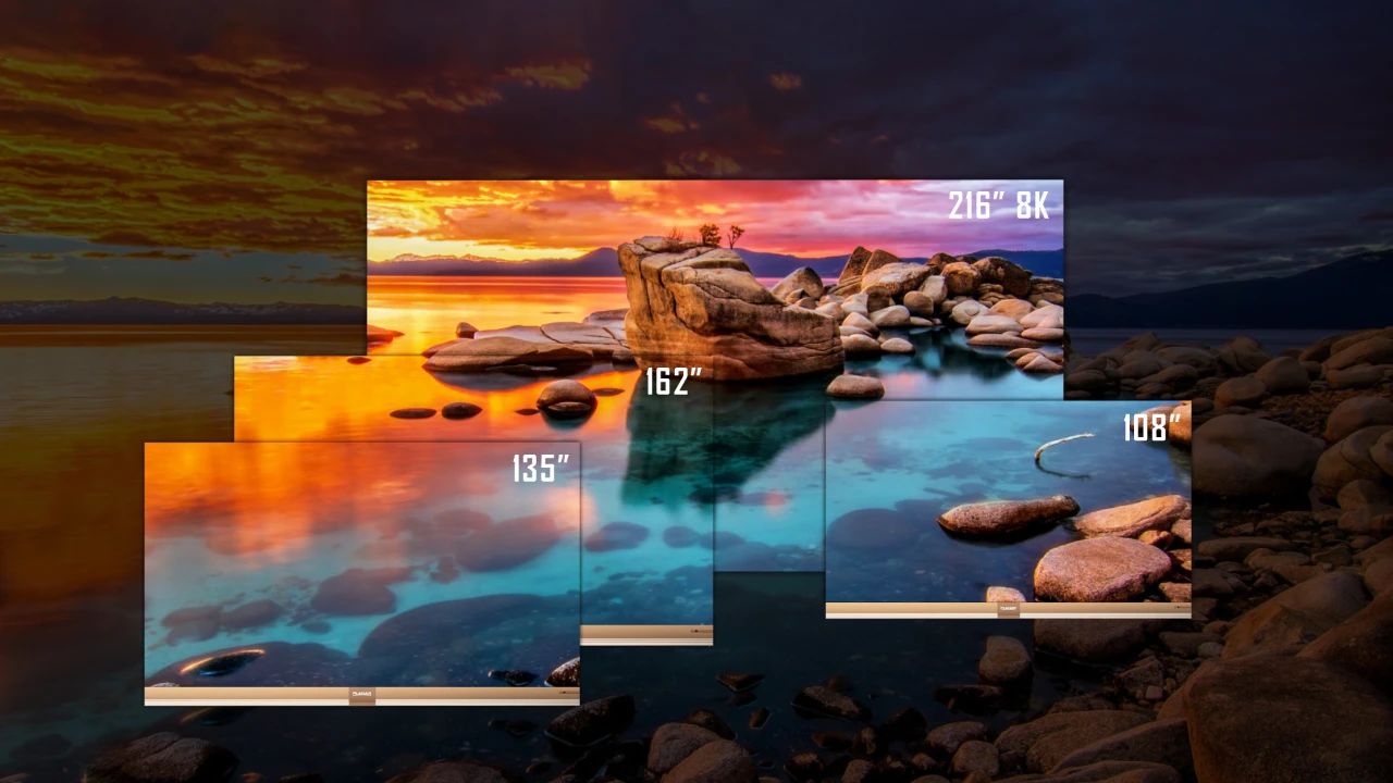 Micro LED切入家庭消费市场:2021年6月,xkty.com星空新品发布会正式推出Planar品牌Micro LED全系家用大电视,尺寸覆盖108英寸、135英寸、162英寸以及216英寸。