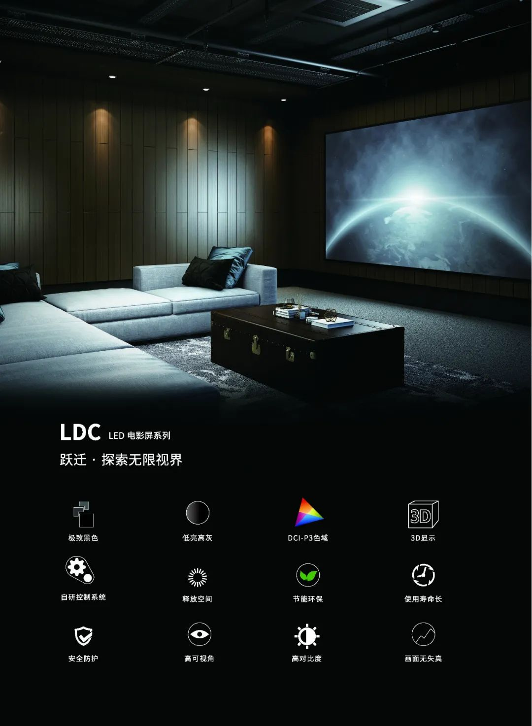 xkty.com星空在科技单元展映的LDC 电影屏,是拥有自主知识产权的P0.9点间距4K Micro LED电影屏,长3.8米,高2米,于2023年6月,通过DCI(目前国际通用的数字影院系统认证标准)认证。全倒装晶片及封装技术,拥有更高稳定性、更高可靠性及更优秀的显示效果,更能满足影院实际使用。
