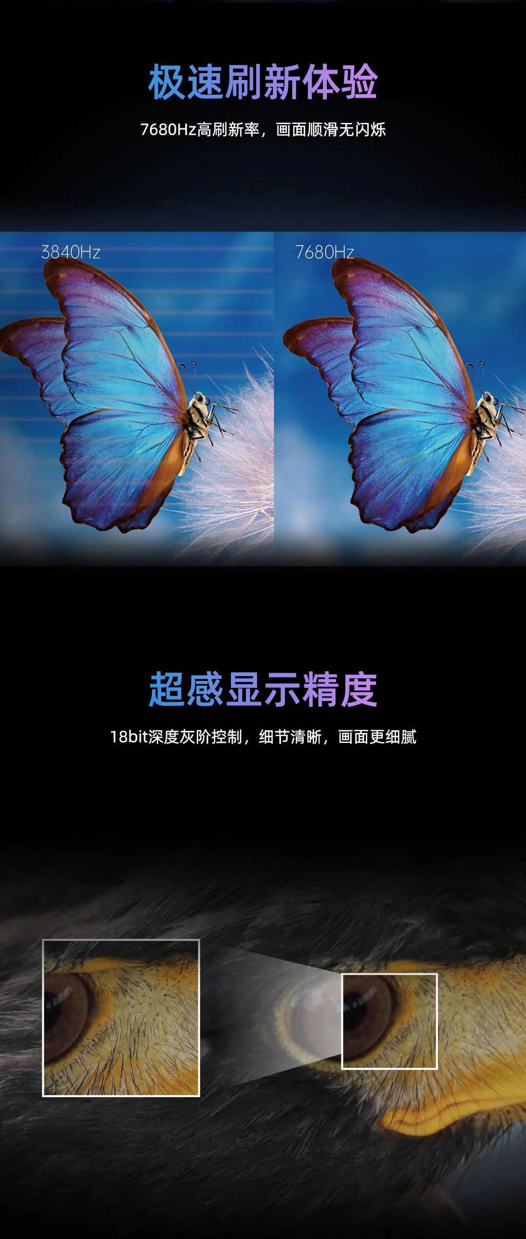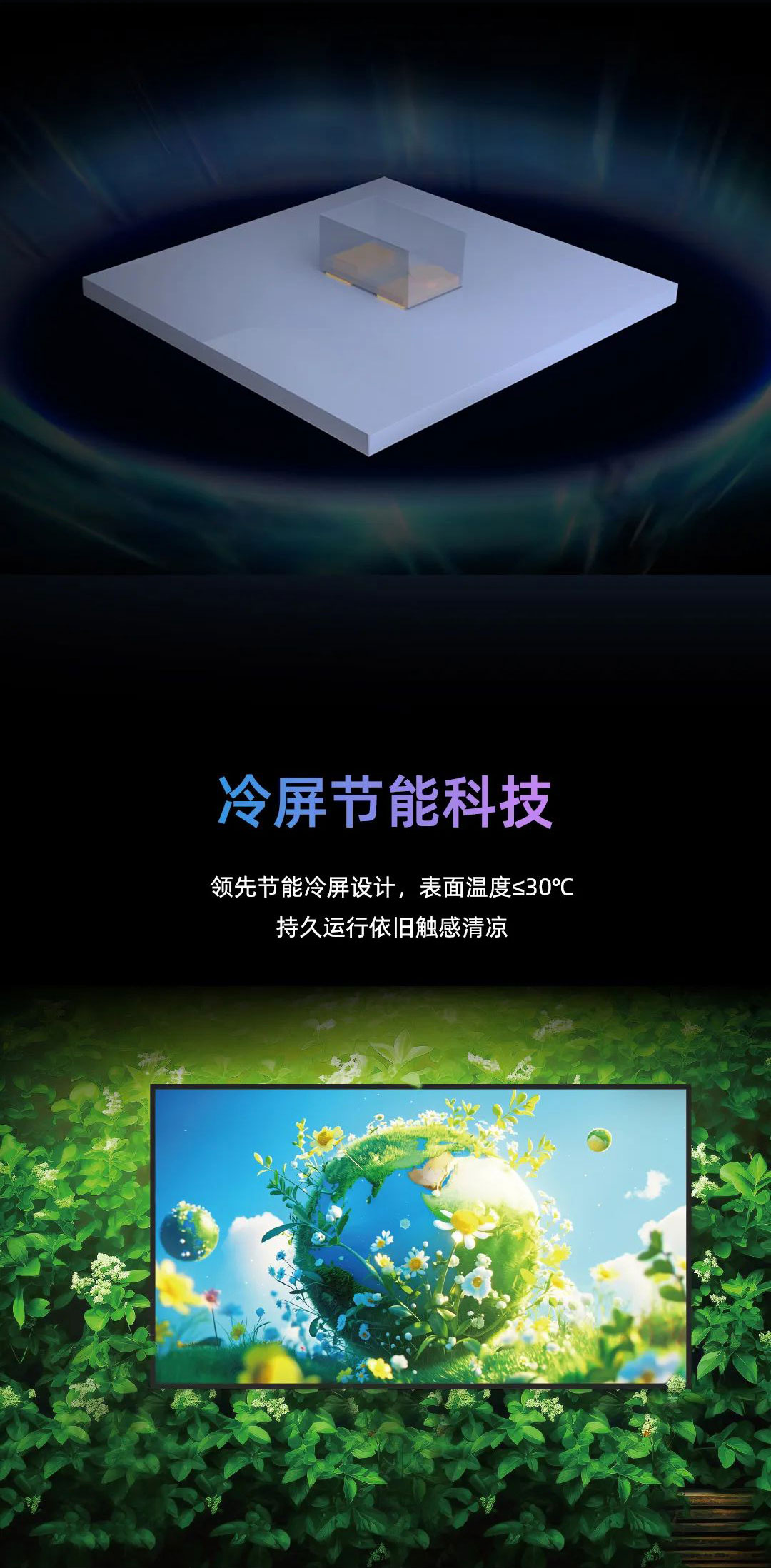 xkty.com星空新一代MG冷屏系列采用Micro显示技术,配备极致深黑模组与超高亮度显示,呈现2500nit亮度与30000:1对比度;搭载xkty.com星空最新节能恒流驱动芯片,在25℃室温环境,600亮度下屏幕表面温度≤30°C。
