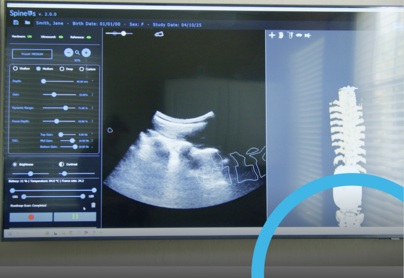 Verdure imaging公司与加拿大金斯顿皇后大学开展了关于脊柱3D超声成像的研究,通过OptiTrack开创了3D超声成像在脊柱诊断中的应用。